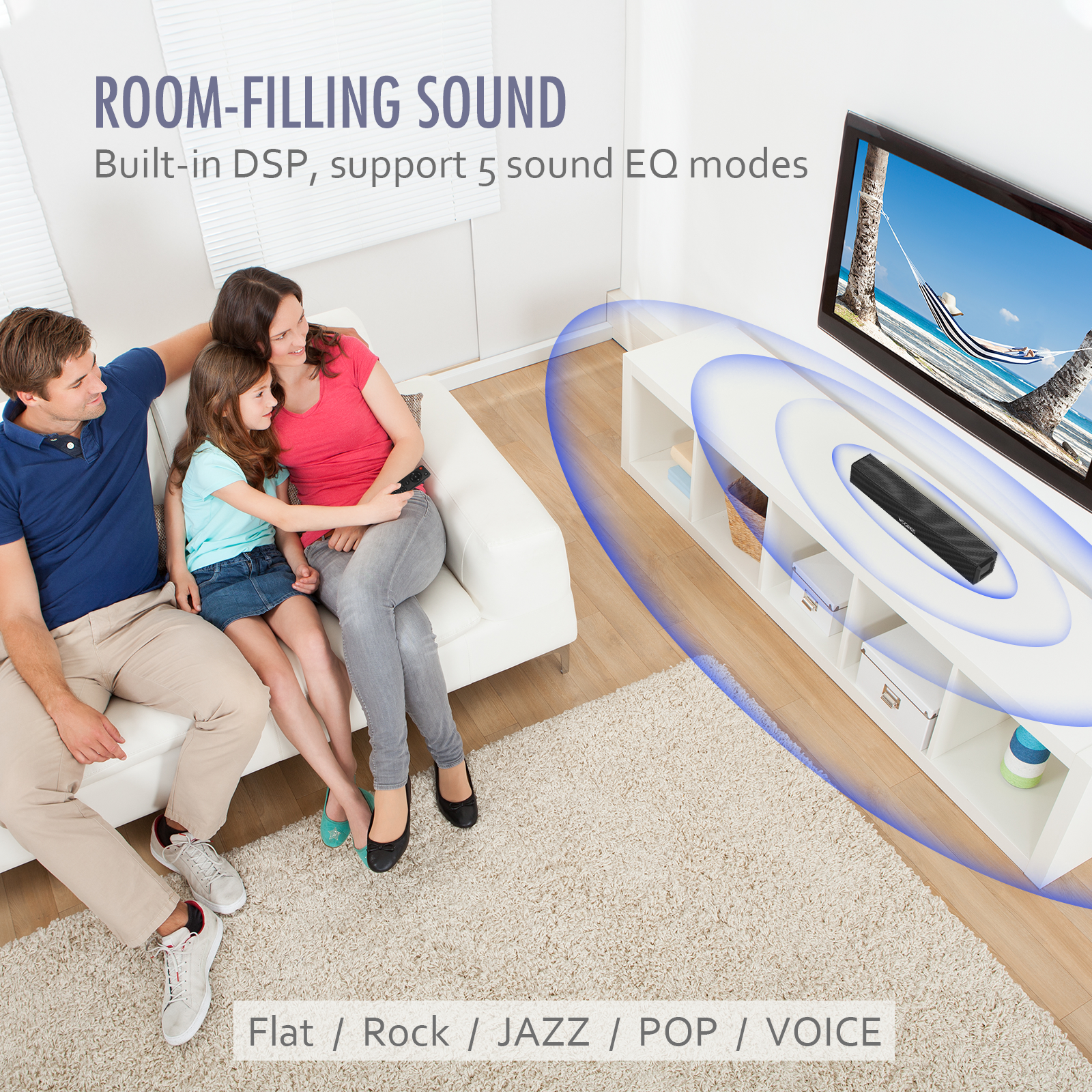 - Input: Bluetooth 5.0, AUX-in, USB, Optical, Coaxial